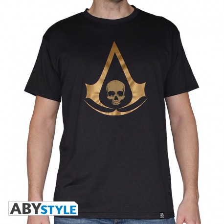 t-shirt assassin's creed crest ac4 goldsur ce t-shirt assassin's creed black flag, abystyle a repris le crest des assassins et le crâne des pirates. cet emblème signifie que vous faites partie de l'équipage du capitaine edward kenway.en version "or" à l'image de la richesse des pirates !- coupe ample et tubulaire, col rond ras du cou double épaisseur en côte 1x1- t-shirt d'excellente qualité : 185g/m², 100% coton- coloris : black used